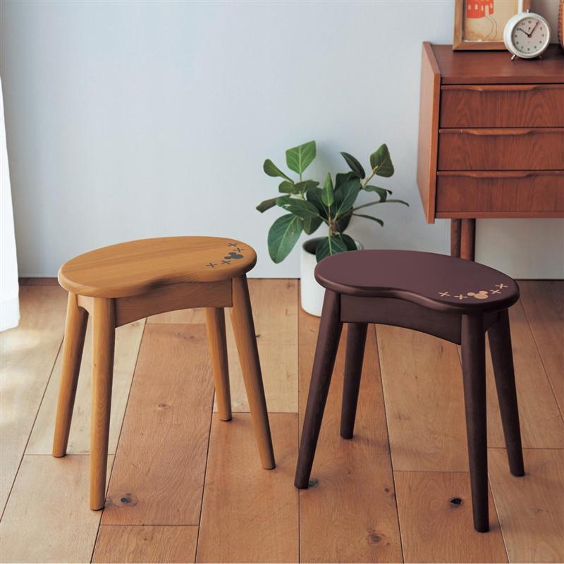 【Disney】 ディズニー 天然木のやさしい丸みのスツール「ミッキーモチーフ」 「ナチュラル」 ◇ ベルメゾン 家具 収納 椅子 チェア いす スツール ◇