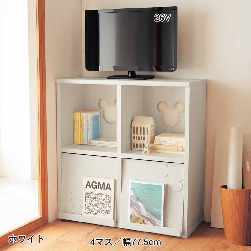 【Disney】ディズニー コンパクトフラップキャビネット 「ホワイト」 ◆ 4マス/77.5 ◆ ◇ 家具 収納 リビング キャビネット リビング ボード チェスト ◇