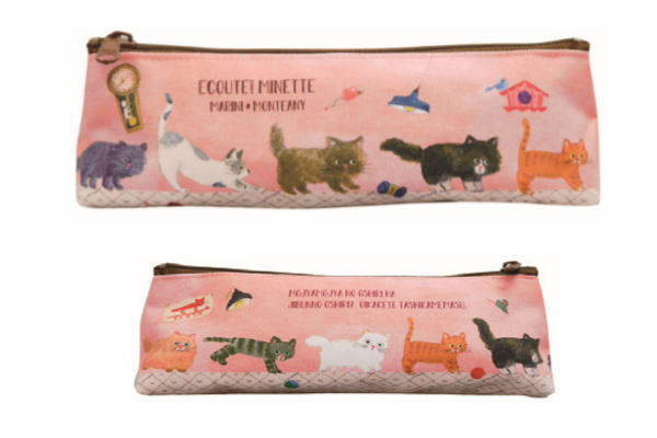 【日本製】【ECOUTE】【エクート】三角ペンポーチ【くるくる】【ネコ】【エクートミネット】【ミネット】【ねこ】【猫】【動物】【アニマル】【ポーチ】【ふでばこ】【小物入れ】【ペンケース】【ペンポーチ】【文房具】【筆箱】【学校】【スクール】【かわいい】