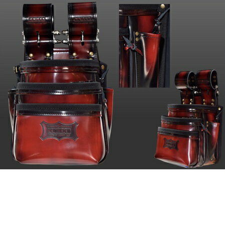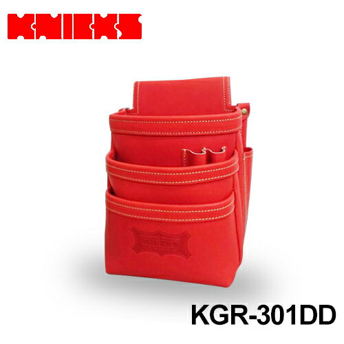 ニックス KGR-301DDX チェーンタイプ高級グローブ革使用3段腰袋 レッド KNICKS 受注生産